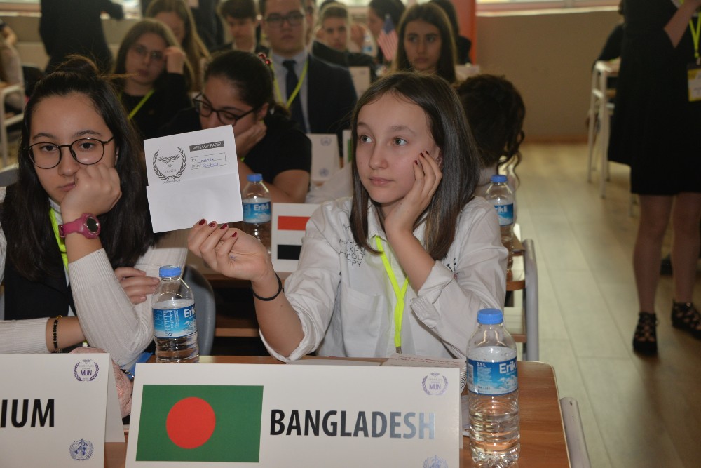 Şahinkaya Koleji 6, 7 ve 8. sınıf öğrencilerinin Birleşmiş Milletler’in işleyişini öğrenmesi amacıyla düzenlenen MUN Junior Konferansı’nda delegeler, üç gün boyunca dünya sorunlarına çözüm bulmaya çalıştılar. WHO (Dünya Sağlık Örgütü) Komitesinde ‘Genetiği Değiştirilmiş Organizmaları’ tartışan delegeler, GDO’lu gıdaların kullanım alanlarını ve bu gıdaların ortaya çıkardığı sorunları ele aldılar. Genetik mühendisliğinin sağlık sektöründeki etkilerine değinip çözüm önerileri getiren delegelerin, konferansın son günü sundukları yasa tasarısı oy çoğunluğu ile kabul edildi.